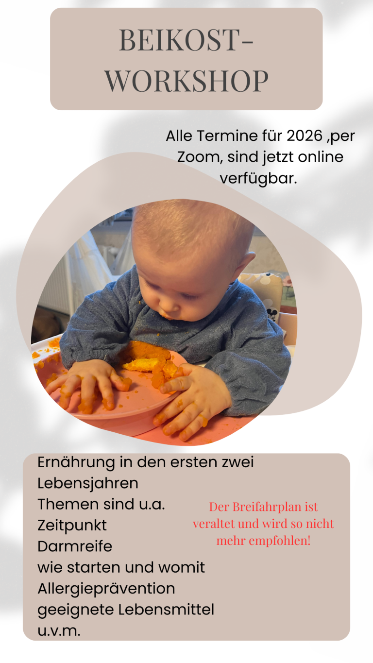 Auch nach längerer Stillzeit können noch Probleme und Fragen auftreten. Oft gibt es auch Unsicherheiten bei der Beikosteinführung. Hier ergänzt sich meine Stillweiterbildung mit meiner Fortbildung zur Fachkraft für Beikost.
